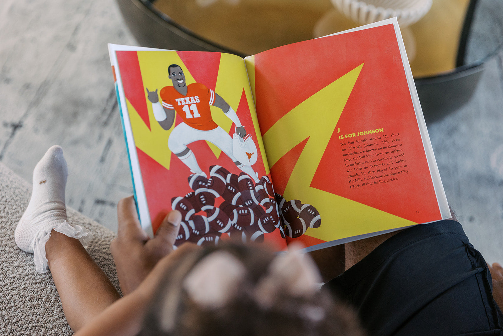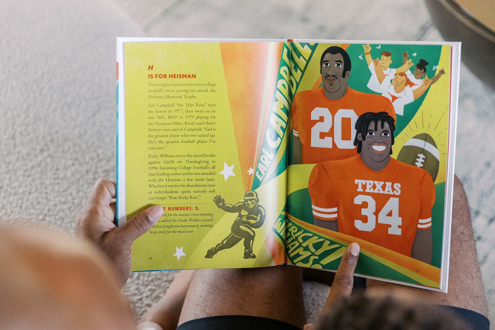 “The Longhorn Alphabet is an excellent journey through the history and traditions of Texas Football. The captivating illustrations and engaging writing make it a hit with kids. As a lifetime Longhorn and a father, I’m proud to share it with my own children. It’s an amazing way to introduce young readers to the spirit of Longhorn Nation.”